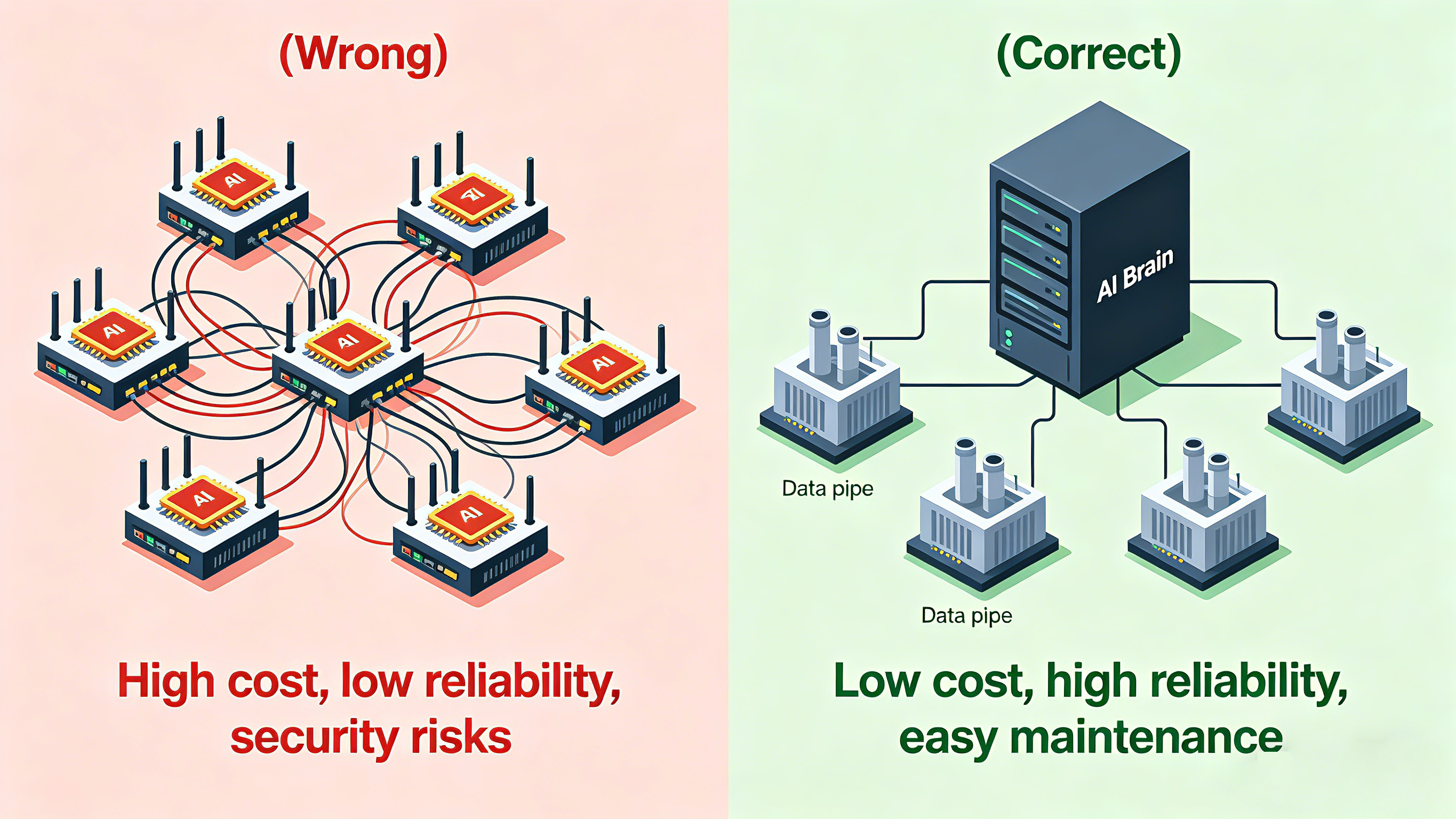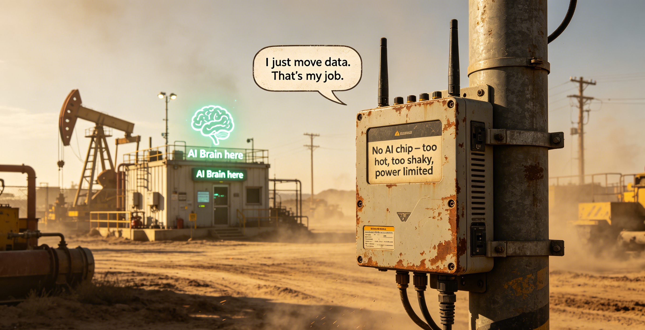 Physical constraints of the field – Industrial sites (mines, offshore platforms, production lines) are often hot, vibrating, and power‑limited. They cannot support high‑power AI chips. Adding AI capability to every router would multiply hardware costs while delivering negligible benefit.